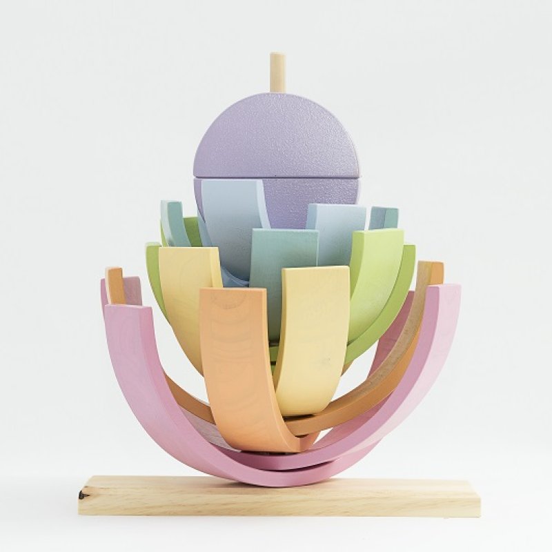 Su madera, imperfecta y natural, les da información sensorial muy valiosa. Sus piezas les ayudan a diferenciar formas y colores. Manipulándolo ganan destreza y coordinación. A través de él van comprendiendo conceptos complejos como el equilibrio, la simetría y la resistencia. Les abre la puerta de par en par al juego simbólico, a construir escenarios e imitar situaciones de la vida real.